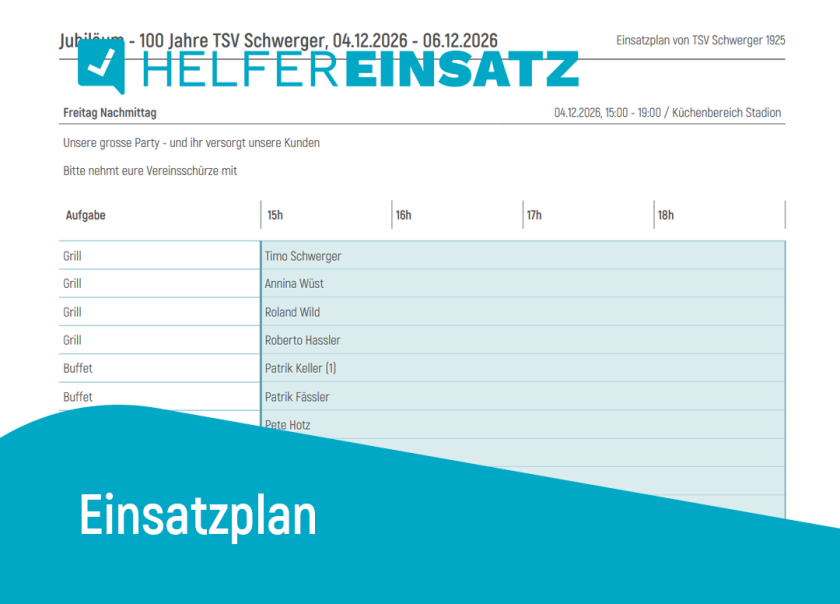 Helfereinsatz unterstützt euch nicht nur in der Planung, der Organisation und der Koordination von Helfenden. Es bietet euch auch die Möglichkeit, Einsatzpläne zu exportieren, damit ihr am Event allen einen Überblick verschaffen könnt.